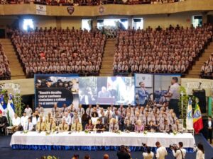 García Hernández valoró la vocación de servicio de los graduandos, mientras que Sang Ben destacó la formación renovada basada en respeto, disciplina, pensamiento crítico y servicio ciudadano.