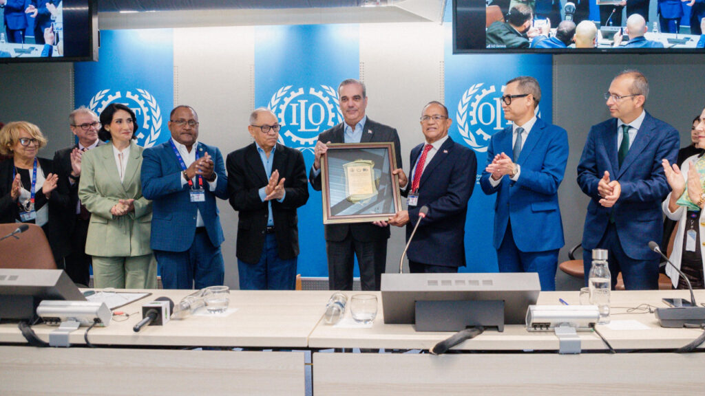 Ginebra, Suiza.– En el marco de la 113.ª Conferencia Internacional de la Organización Internacional del Trabajo (OIT), el presidente de la República Dominicana, Luis Abinader, fue homenajeado esta mañana por su constante respaldo a los derechos, la dignidad y el bienestar de la clase trabajadora dominicana.