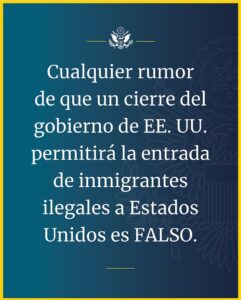 “Cualquier rumor de que un cierre de EE.UU. permitirá la entrada de inmigrantes ilegales a Estados Unidos es FALSO”.
